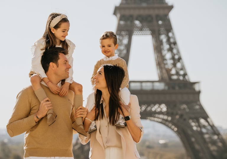 Memórias para toda a vida, com seus maiores amores. Caminhadas leves e risos soltos em família, com a Torre Eiffel como pano de fundo.